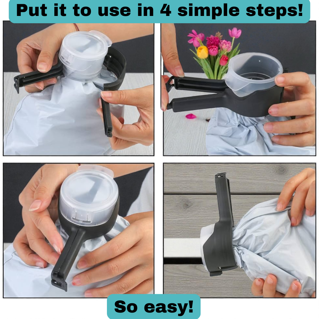 Forget about complicated bag clips—Grample works in seconds with zero effort.